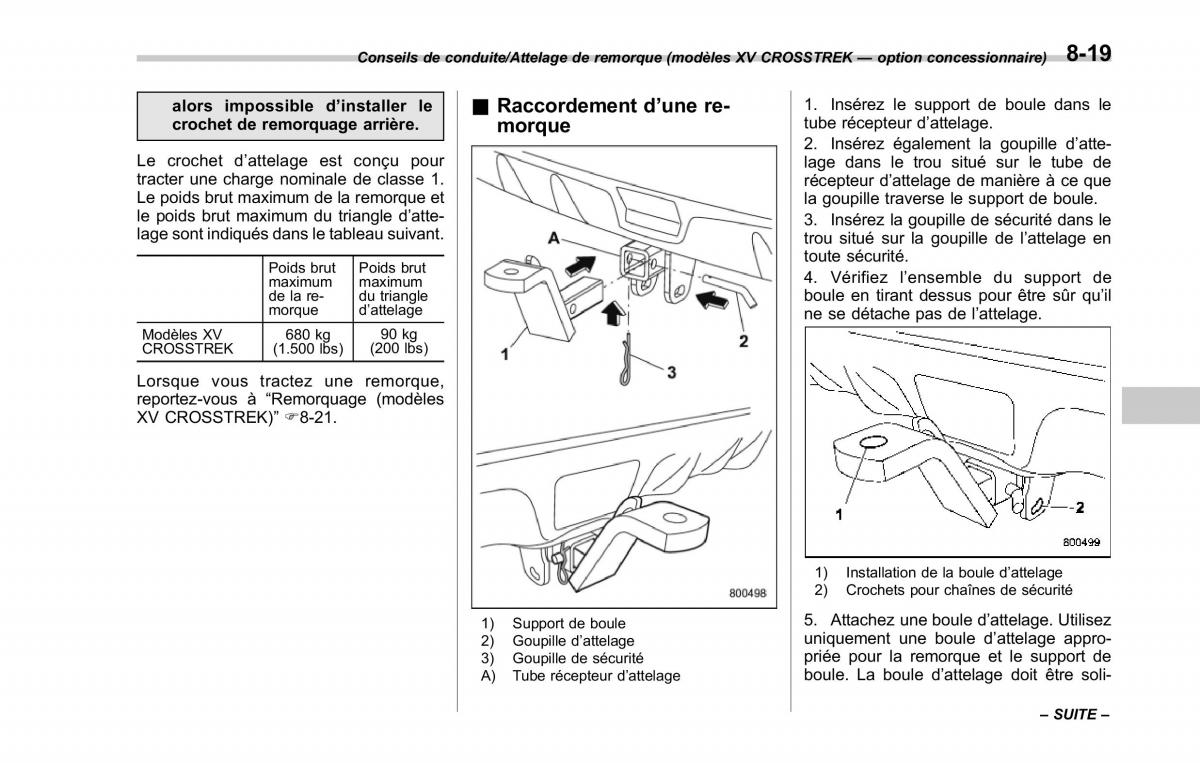 8-18 Conseilsdeconduite/Attelage de remorque (modèles XV CROSSTREK — option concessionnaire)Conseils de conduite/Attelage de remorque (modèles XV CROSSTREK — option concessionnaire)8-19