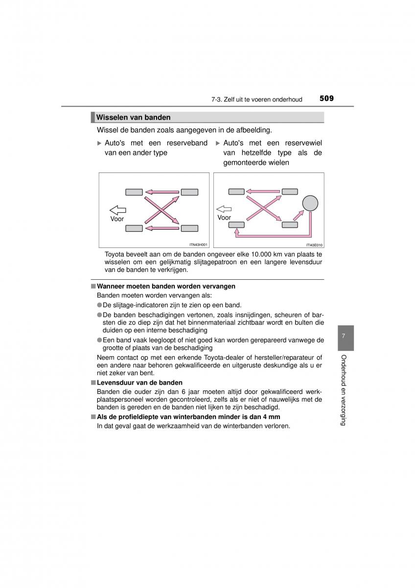Toyota beveelt aan om de banden ongeveer elke 10.000 km van plaats te