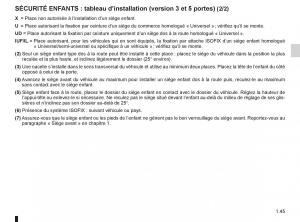 séCURITé ENFANTs : tableau d’installation (version 3 et 5 portes) (2/2)