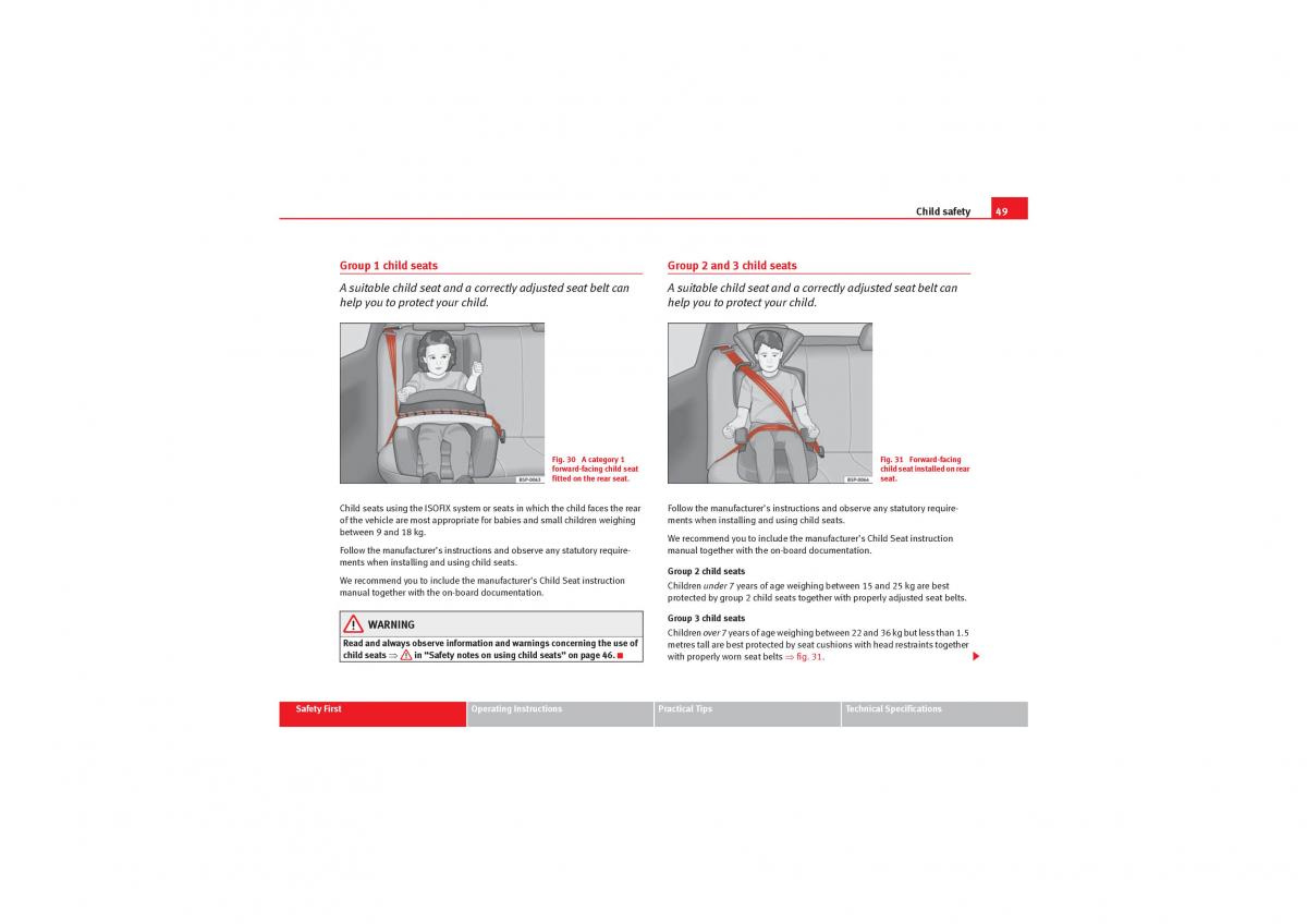 child seats ⇒ in “Safety notes on using child seats” on page 46.with properly worn seat belts ⇒ fig. 31.