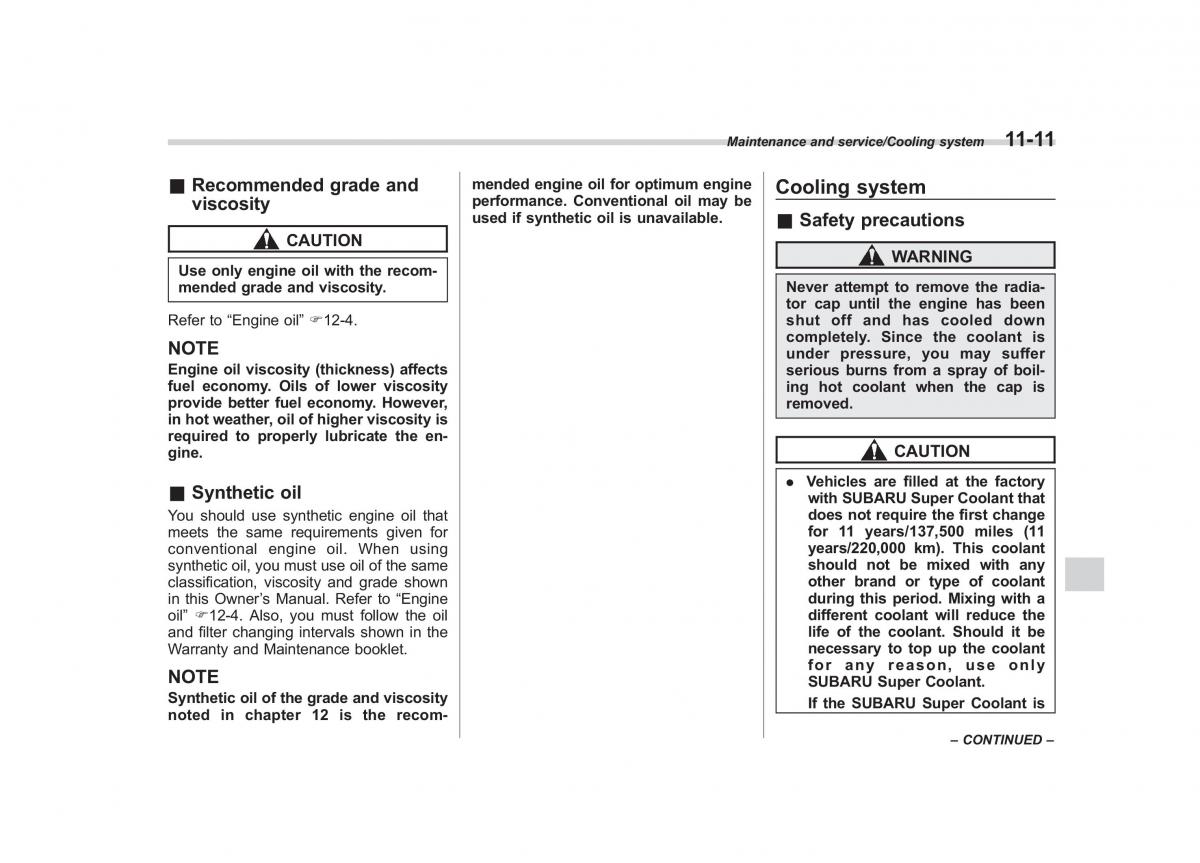 from owners manual to the vehicle Subaru XV, year of production 2011: