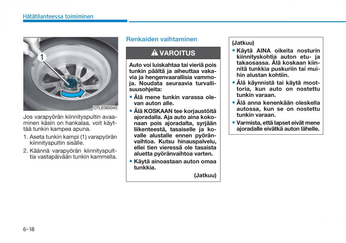 Jos varapyörän kiinnityspultin avaa- ajoradalla. Aja auto aina koko- tunkin varaan.