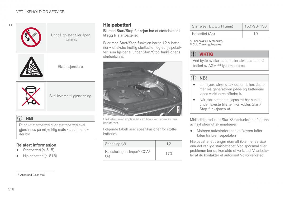 Hjelpebatteri (s. 518) (A) ler at du kontakter et autorisert Volvo-verksted.