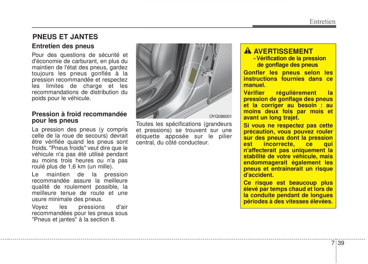 La pression des pneus (y compris Si vous ne respectez pas cette