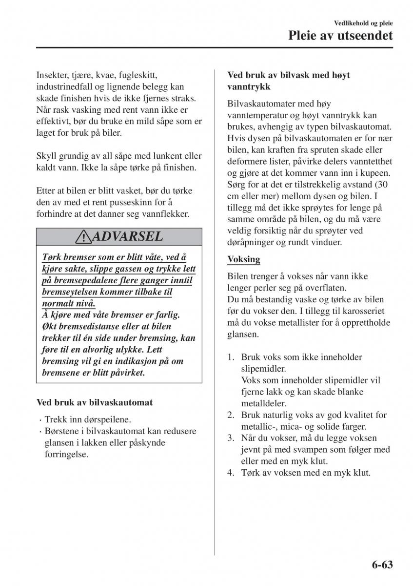 • Børstene i bilvaskautomat kan redusere 3. Når du vokser, må du legge voksen