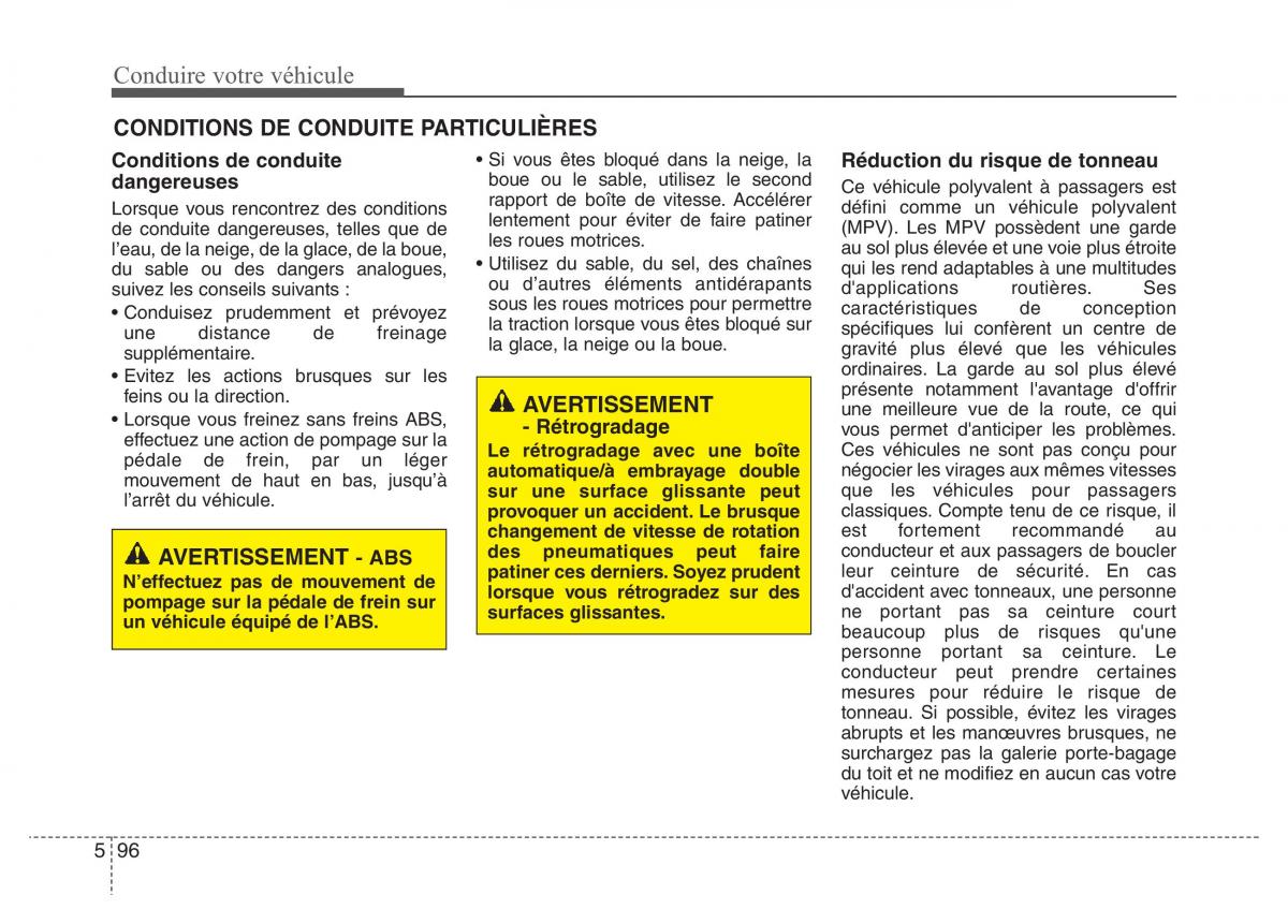 CONDITIONS DE CONDUITE PARTICULIÈRES