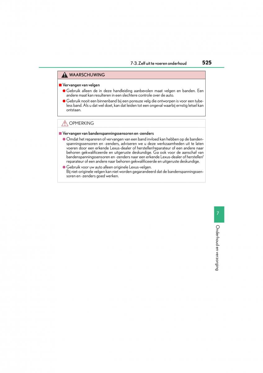 7-3. Zelf uit te voeren onderhoud525