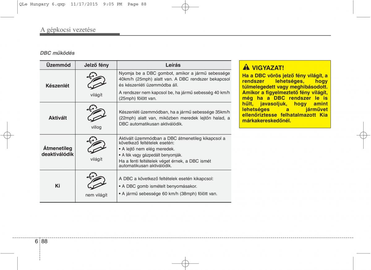40km/h (25mph) alatt van. A DBC rendszer bekapcsol