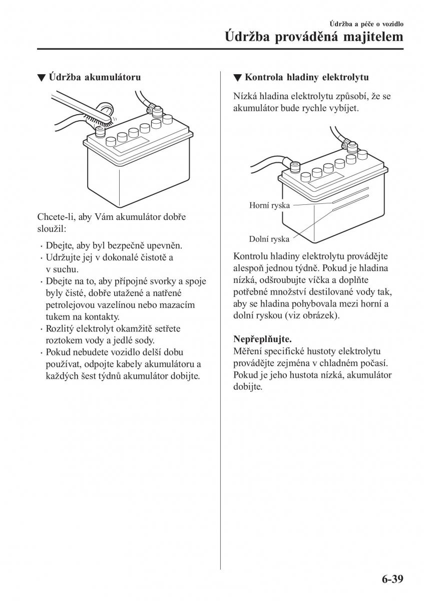 • Udržujte jej v dokonalé čistotě a Kontrolu hladiny elektrolytu provádějte