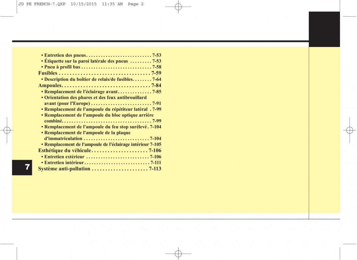 Esthétique du véhicule. . . . . . . . . . . . . . . . . . . . . 7-106