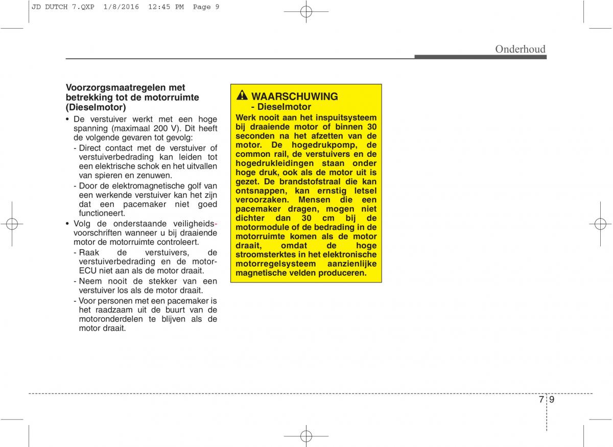voorschriften wanneer u bij draaiendemotorruimte komen als de motor