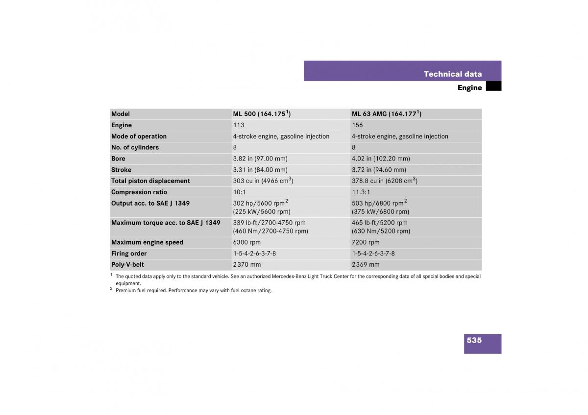 from owners manual to the vehicle Mercedes ML, year of production 2005 - 2011: