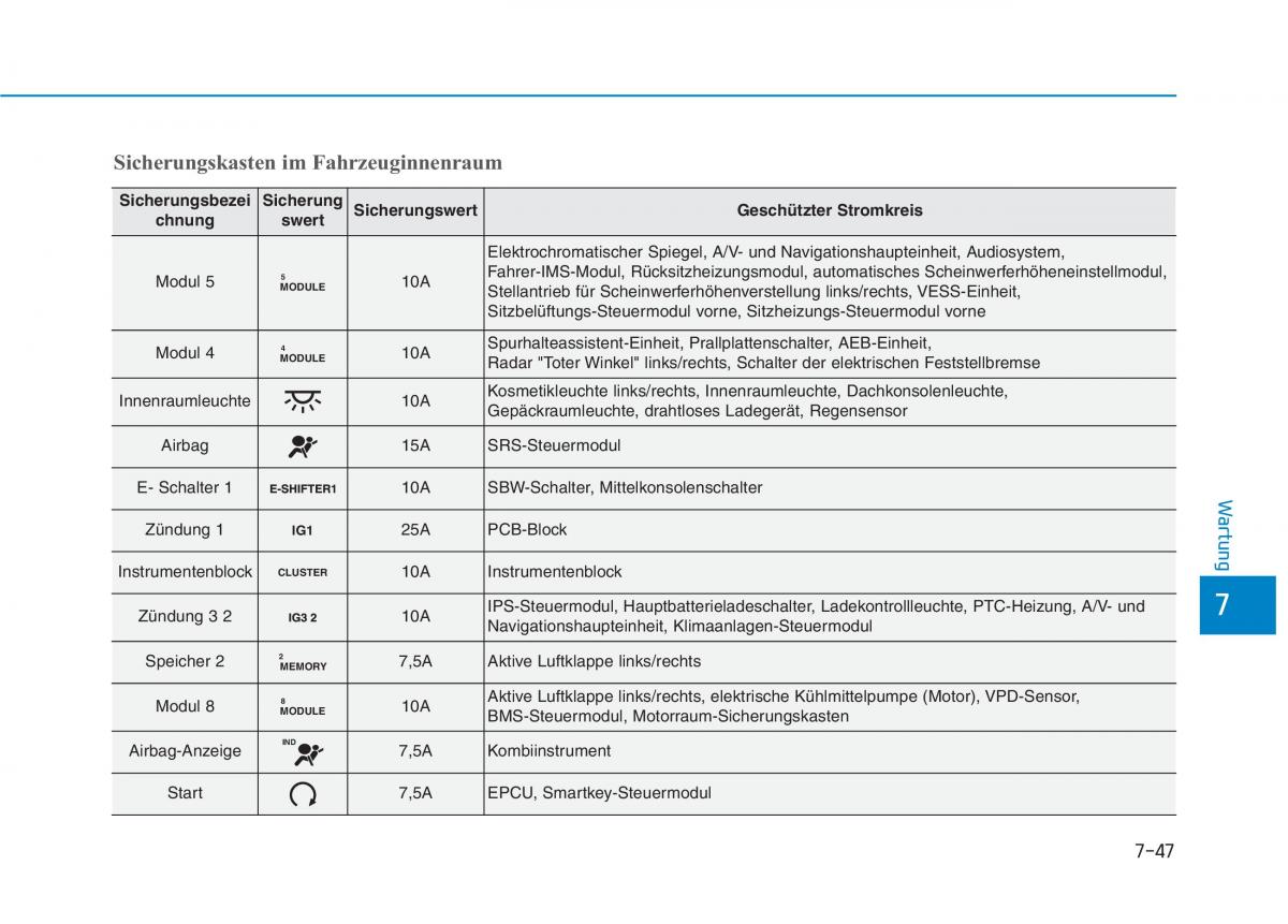Zündung 3 2 10A IPS-Steuermodul, Hauptbatterieladeschalter, Ladekontrollleuchte, PTC-Heizung, A/V- und 7