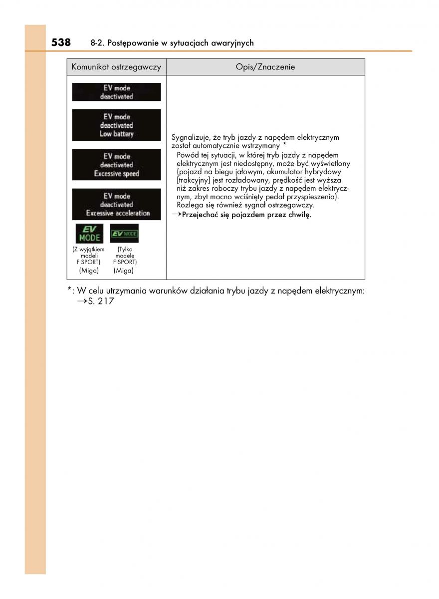 *: W celu utrzymania warunków dzia∏ania trybu jazdy z nap´dem elektrycznym: