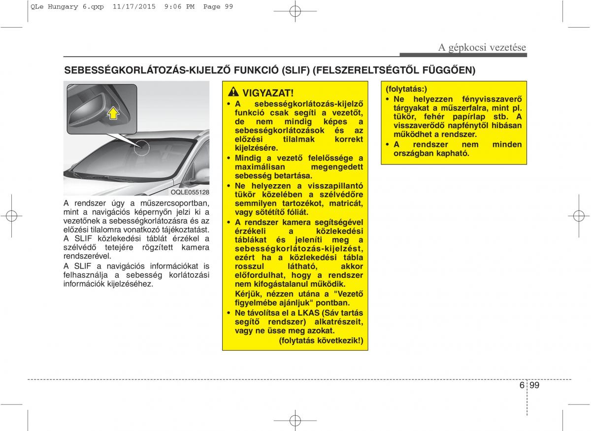 SEBESSÉGKORLÁTOZÁS-KIJELZŐ FUNKCIÓ (SLIF) (FELSZERELTSÉGTŐL FÜGGŐEN)