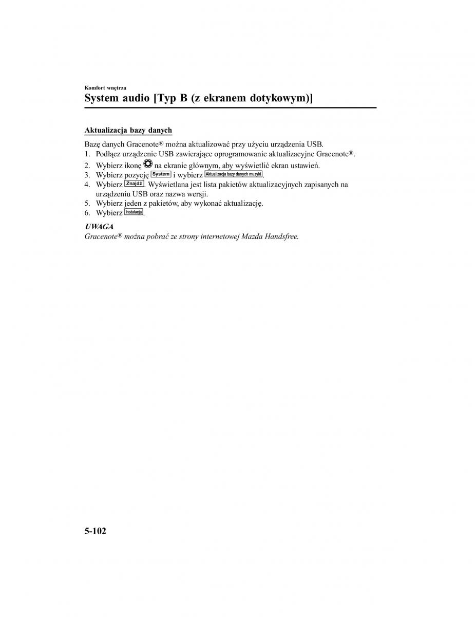 Gracenote można pobrać ze strony internetowej Mazda Handsfree.