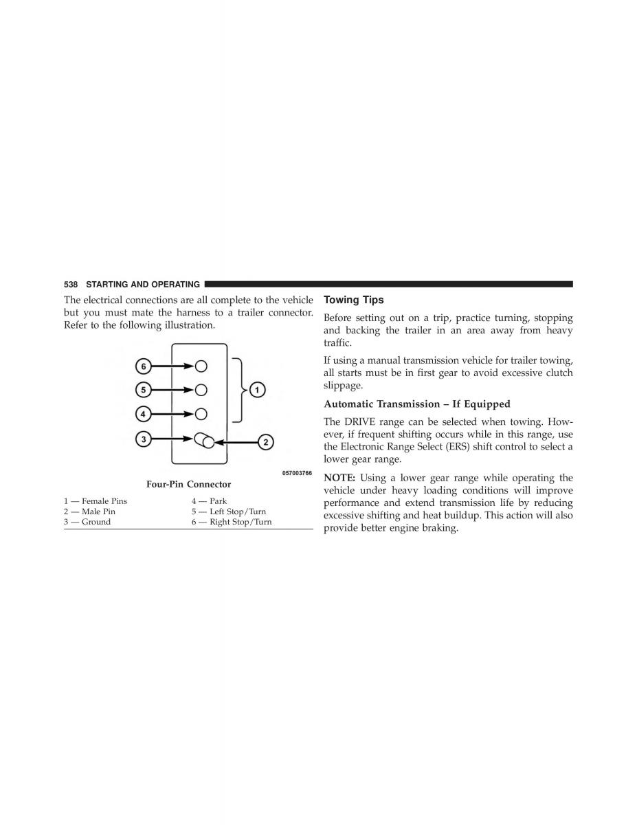 Four-Pin Connector NOTE: Using a lower gear range while operating the