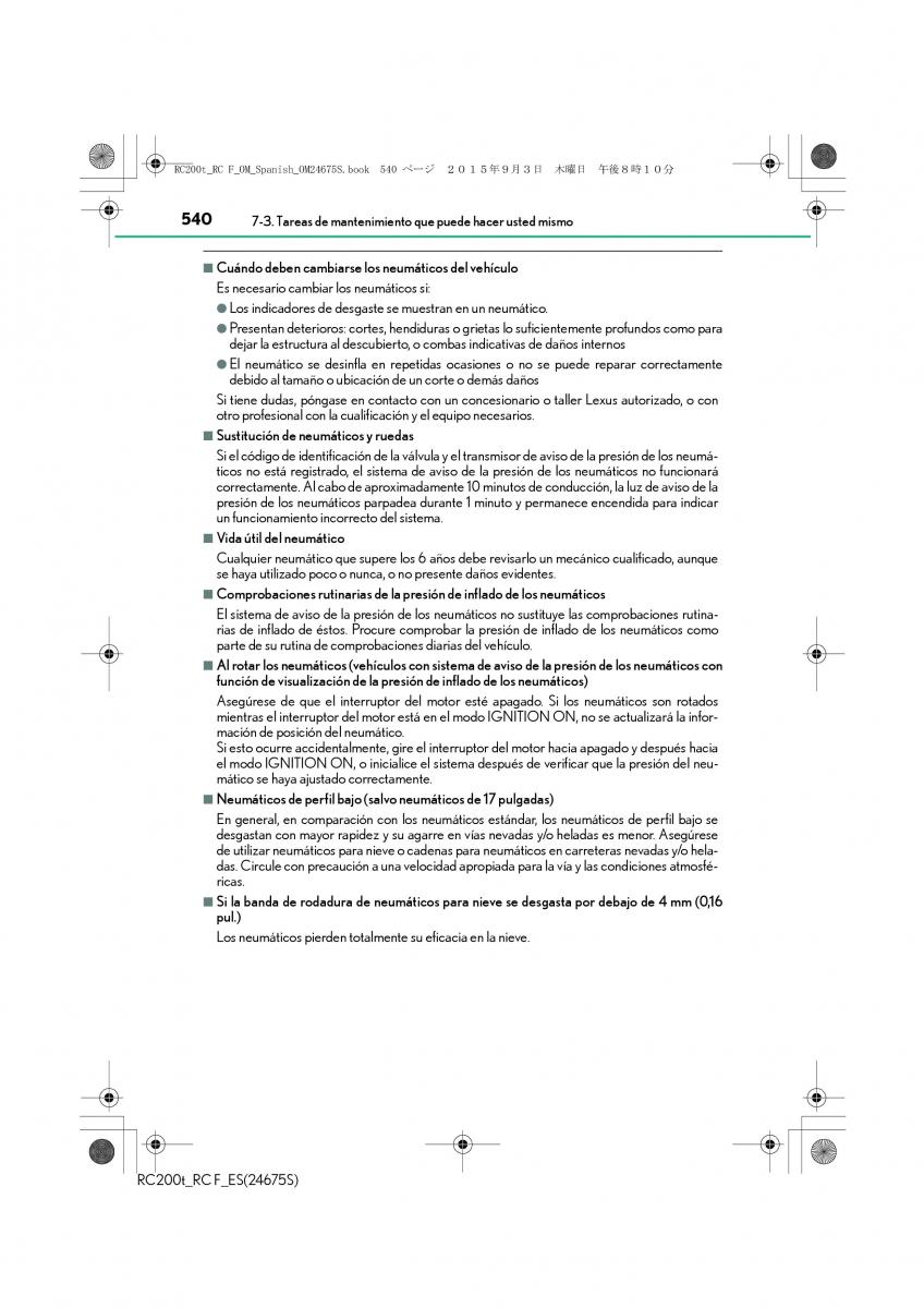 RC200t_RC F_OM_Spanish_OM24675S.book 540 ページ 㧞㧜㧝5年㧥月㧟日 木曜日 午後㧤時㧝㧜分