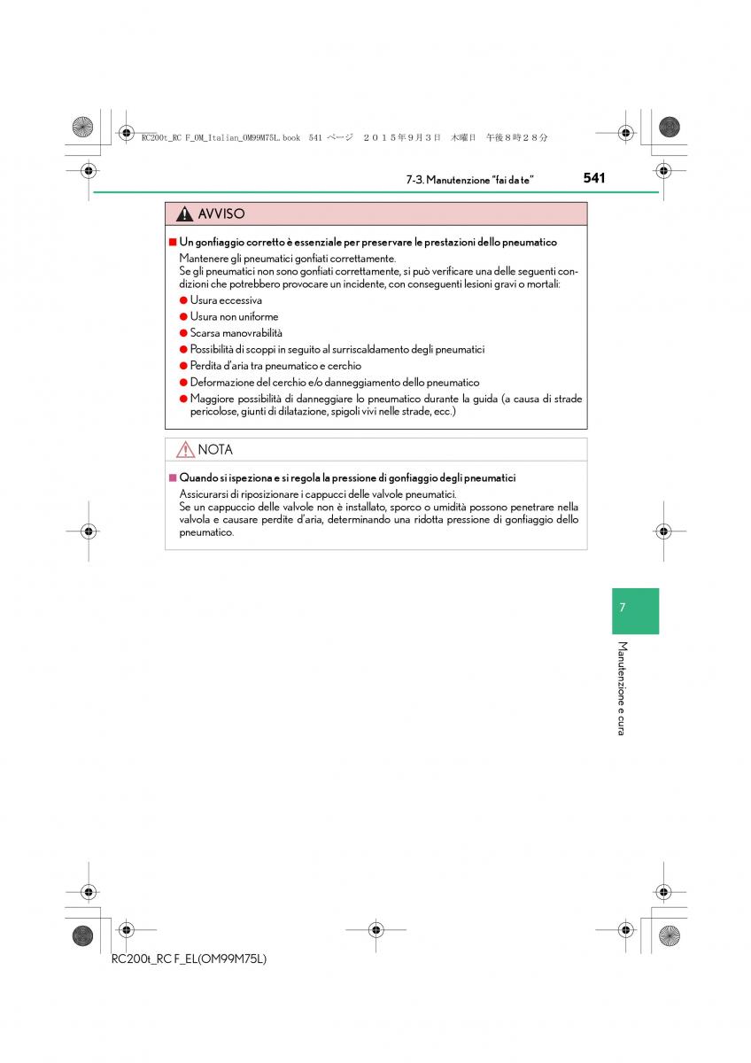 RC200t_RC F_OM_Italian_OM99M75L.book 541 ページ 㧞㧜㧝5年㧥月㧟日 木曜日 午後㧤時㧞㧤分