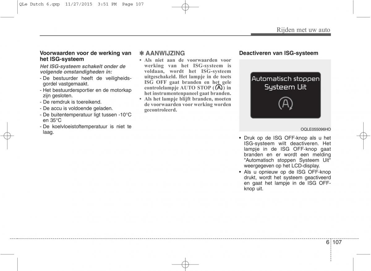 Voorwaarden voor de werking van ✽✽ AANWIJZING Deactiveren van ISG-systeem
