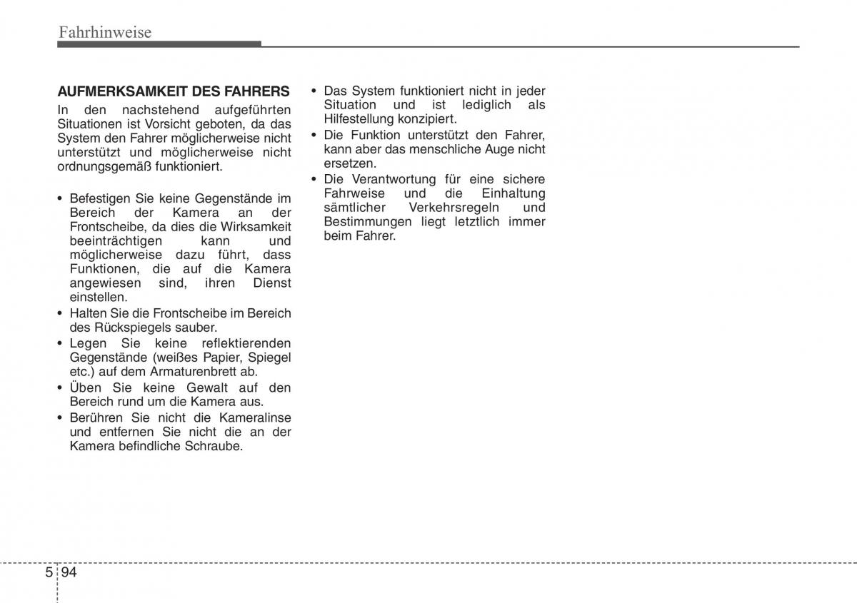AUFMERKSAMKEIT DES FAHRERS• Das System funktioniert nicht in jeder