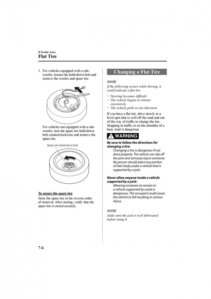 3. For vehicles equipped with a sub- Changing a Flat Tire