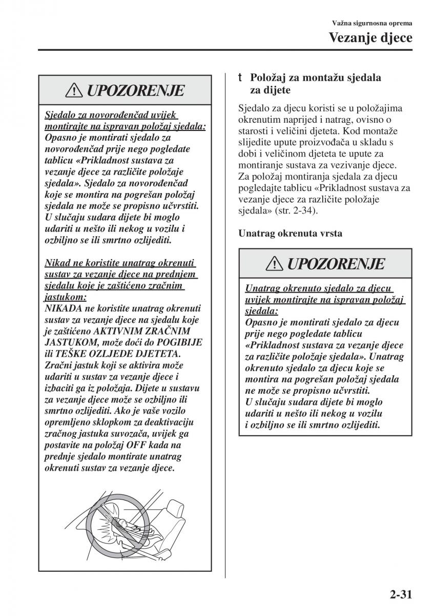 U sluþ aju sudara dijete bi moglo sjedala» (str. 2-34).