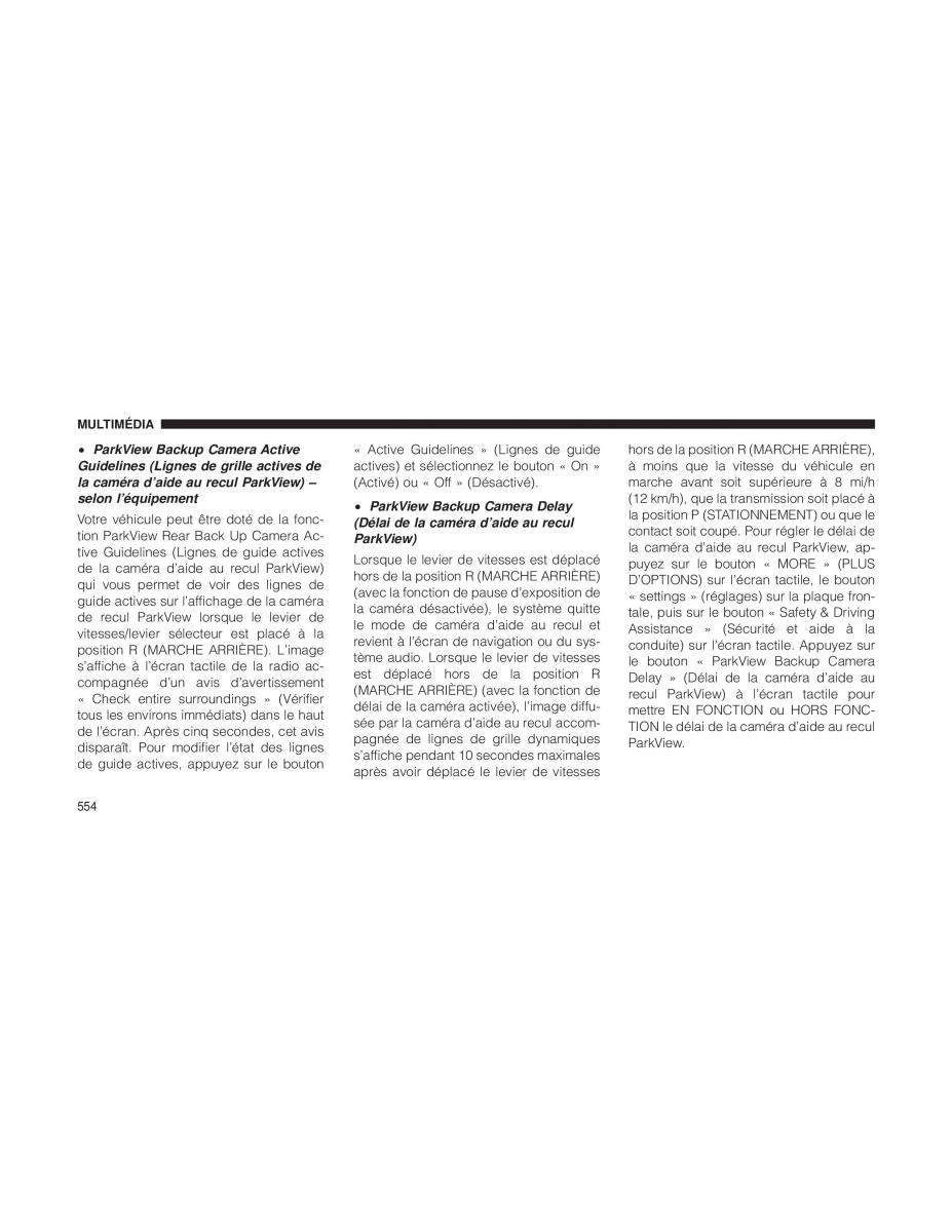 tion ParkView Rear Back Up Camera Ac-ParkView)contact soit coupé. Pour régler le délai de