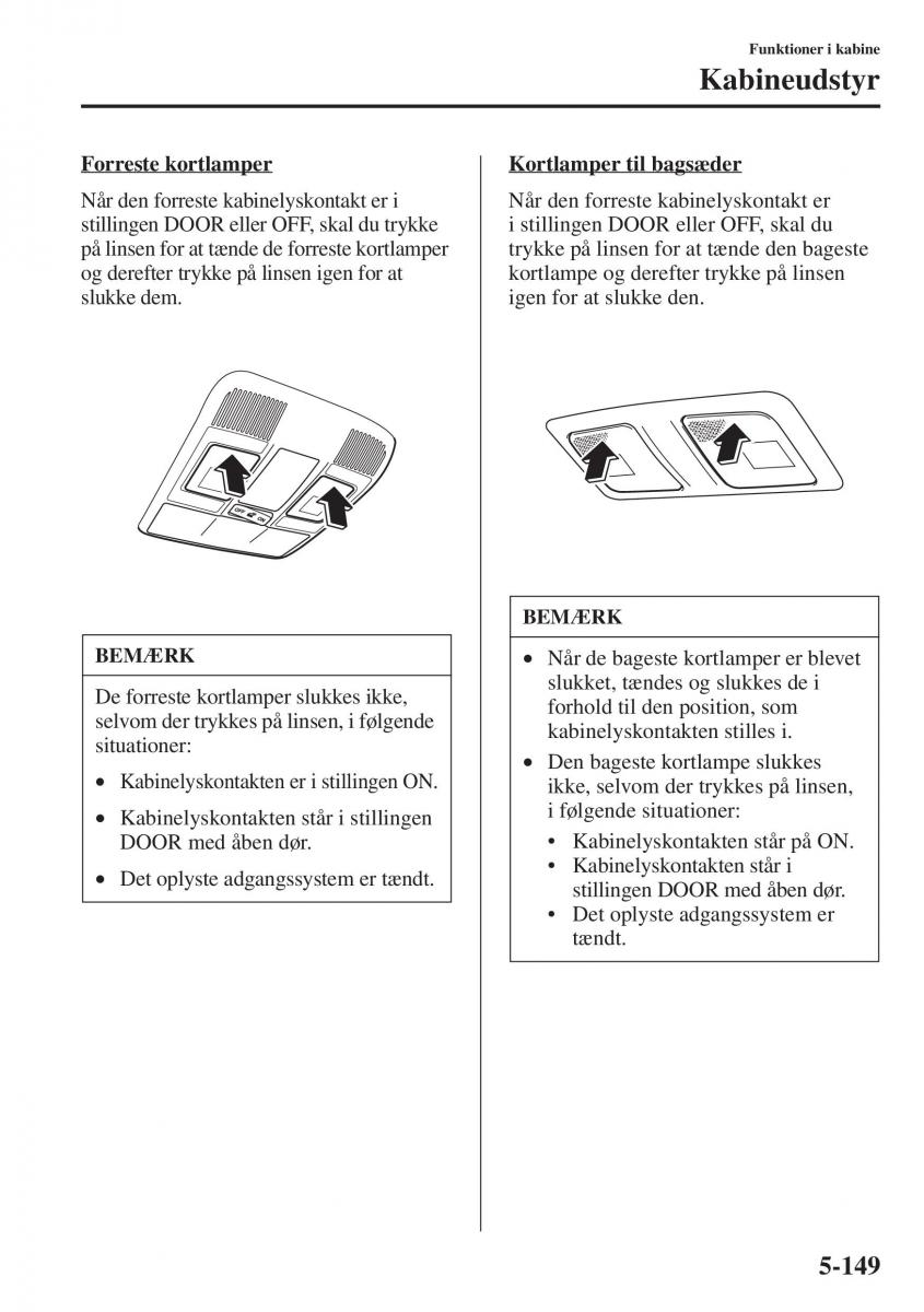 BEMÆRK • Når de bageste kortlamper er blevet