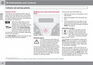 Function check Symbols in the center of the instrument If the red warning symbol lights up: