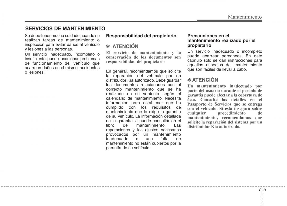 mantenimiento que le exige la garantíacon el vehículo. Si está inseguro sobre