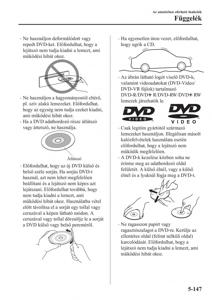 Átlátszó •A DVD-k kezelése közben soha ne
