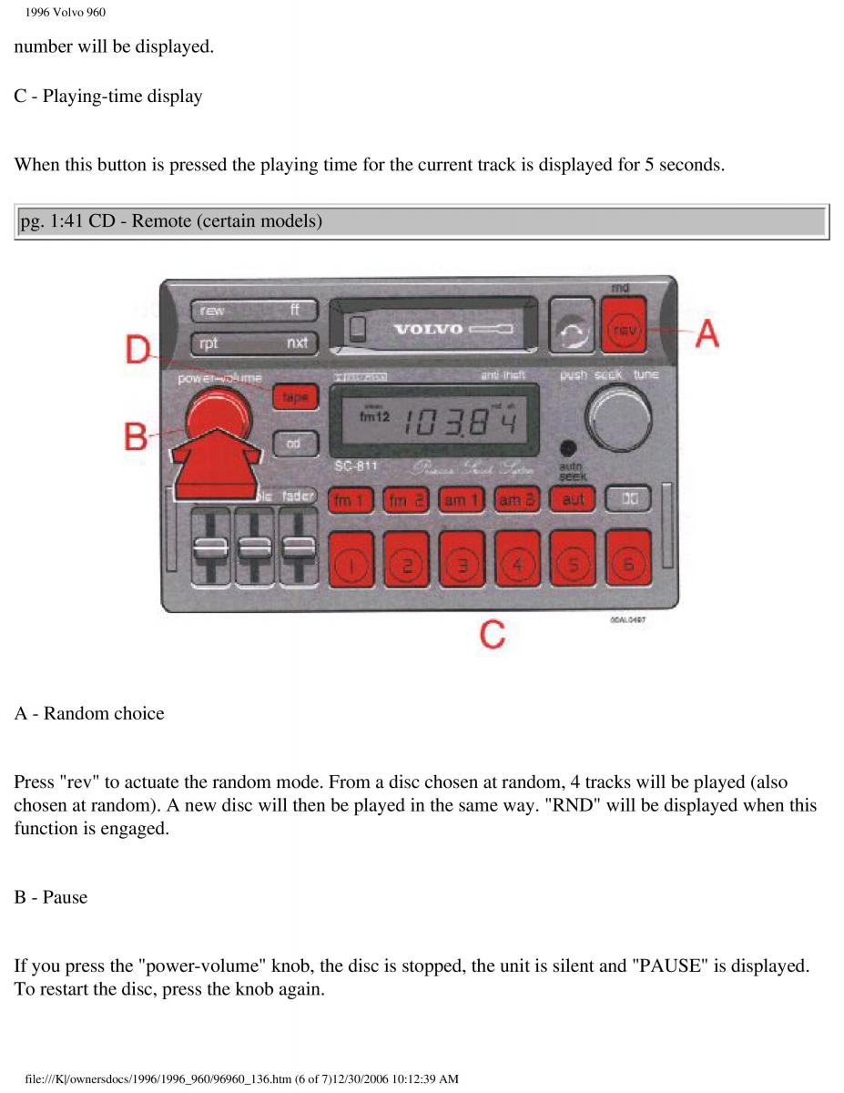 from owners manual to the vehicle Volvo 960, year of production 1990 - 1998: