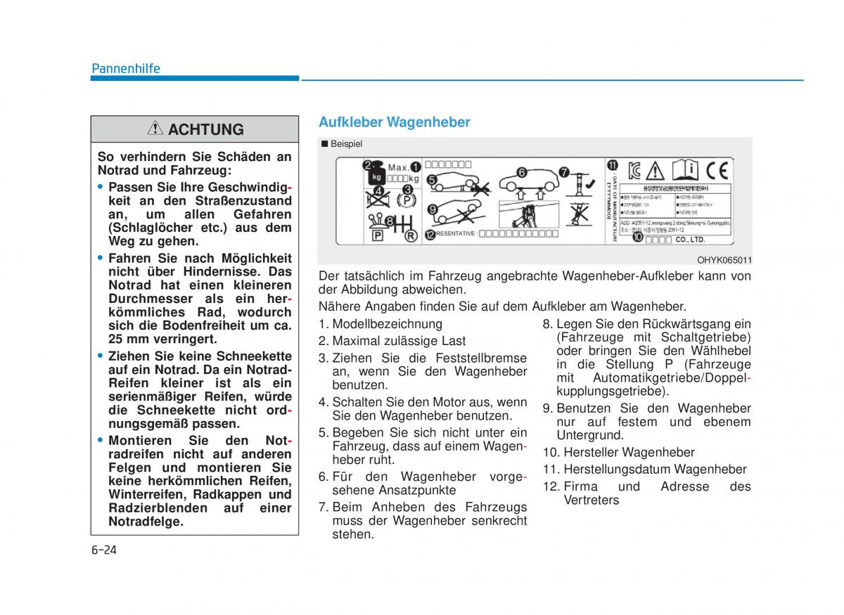 kömmliches Rad, wodurch Nähere Angaben finden Sie auf dem Aufkleber am Wagenheber.