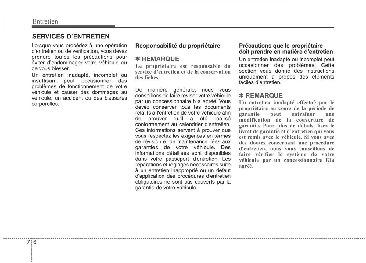 relatifs à l'entretien de votre véhicule afinpropriétaire au cours de la période de