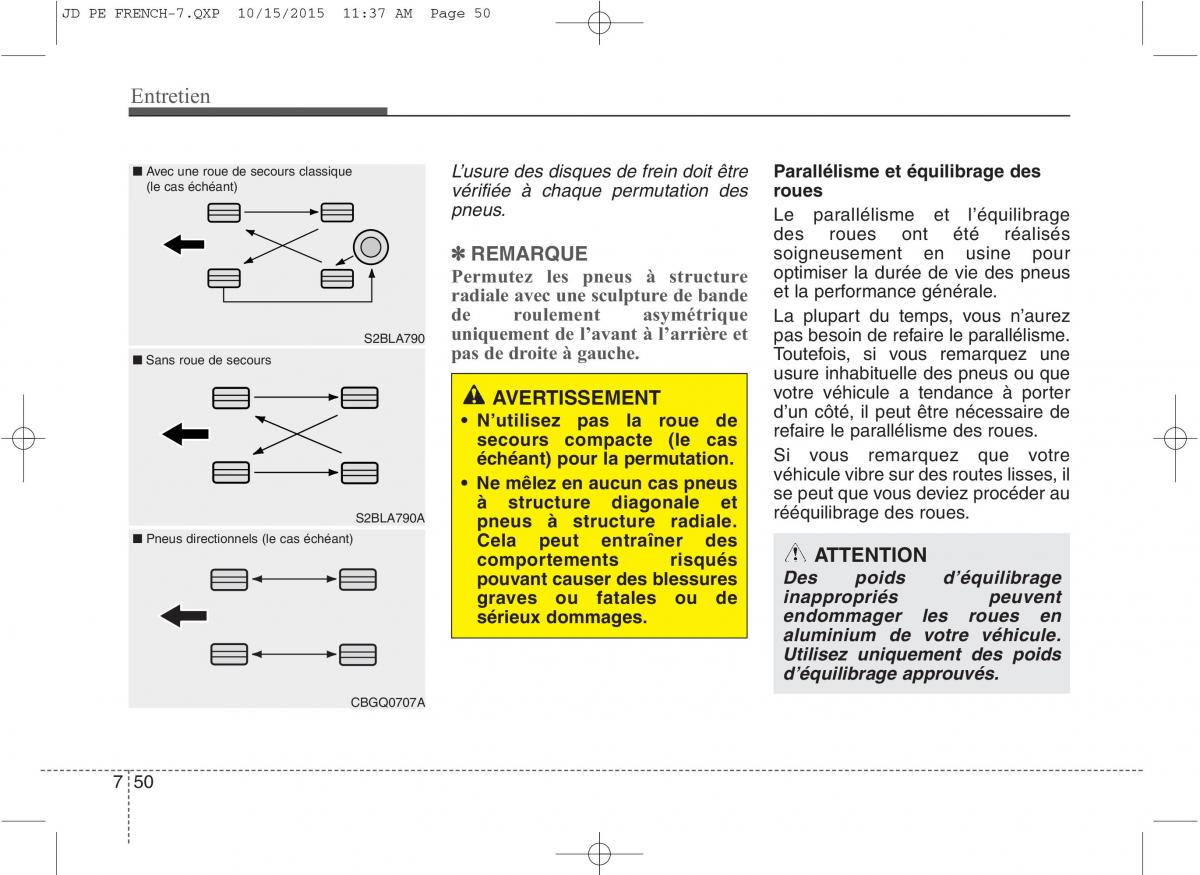 ■Avec une roue de secours classique L’usure des disques de frein doit êtreParallélisme et équilibrage des