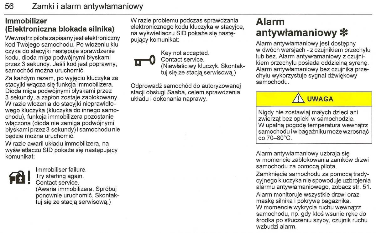 (Awaria immobilizera.Spr6buj alarmu antyw~amaniowego, zobacz str. 51.