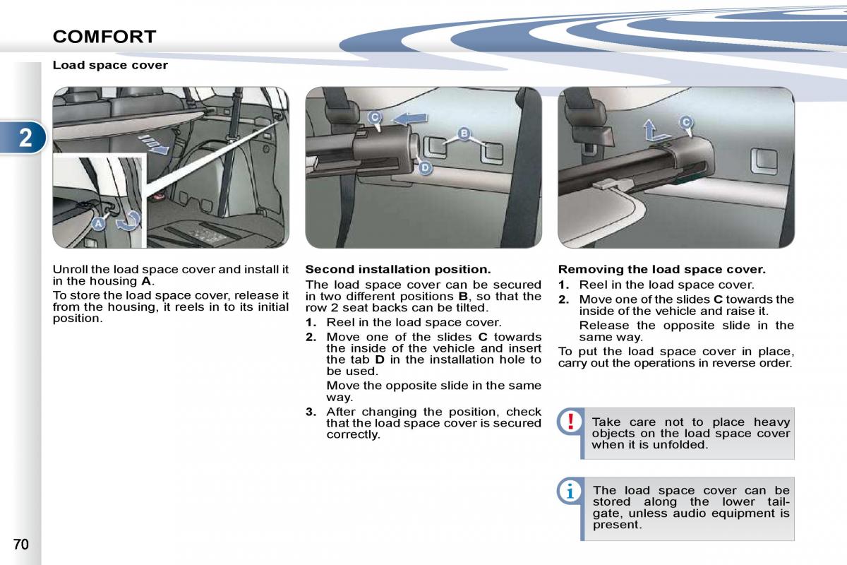 Unroll the load space cover and install it Se cond installation position. R emoving the load space cover.