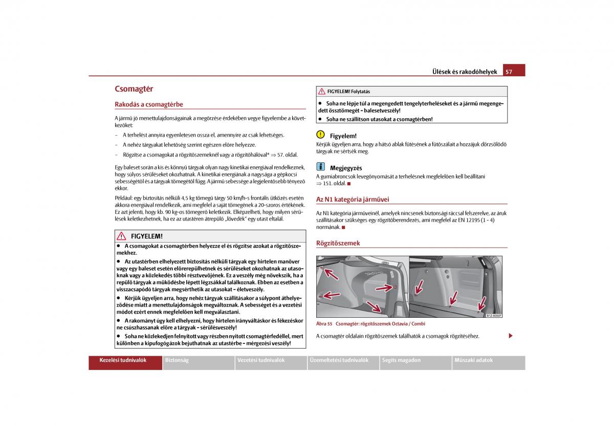 A rakományt úgy kell elhelyezni, hogy hi rtelen irányváltáskor és fékezéskor Ábra 55 Csomagtér: rögzítőszemek Octavia / Combi