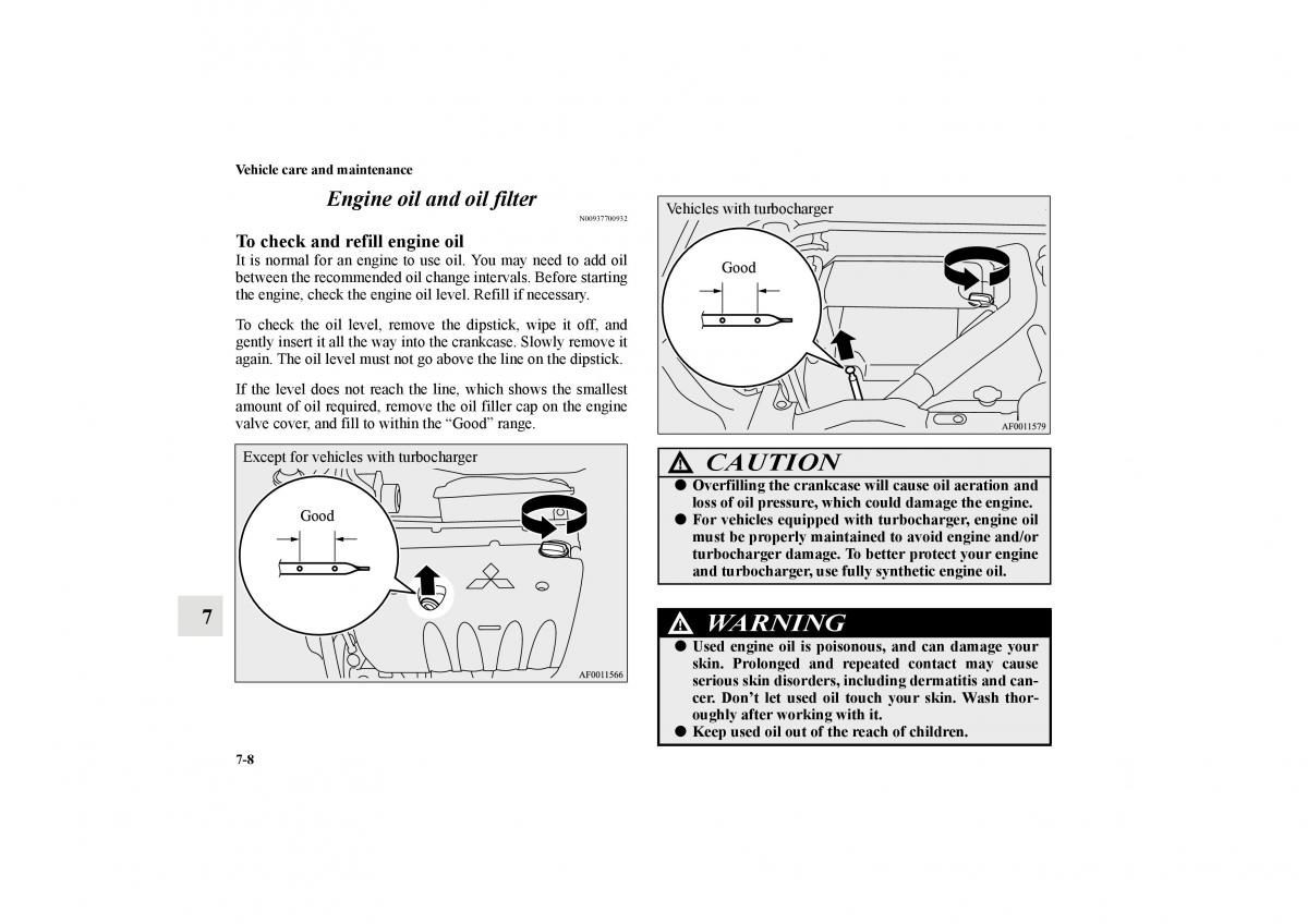 ●For vehicles equipped with turbocharger, engine oil
