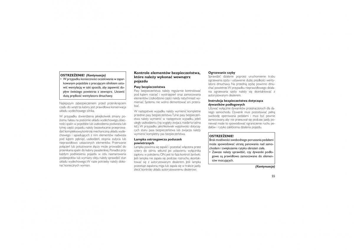 OSTRZEŻENIE! (Kontynuacja)Kontrole elementów bezpieczeństwa,Ogrzewanieszyby
