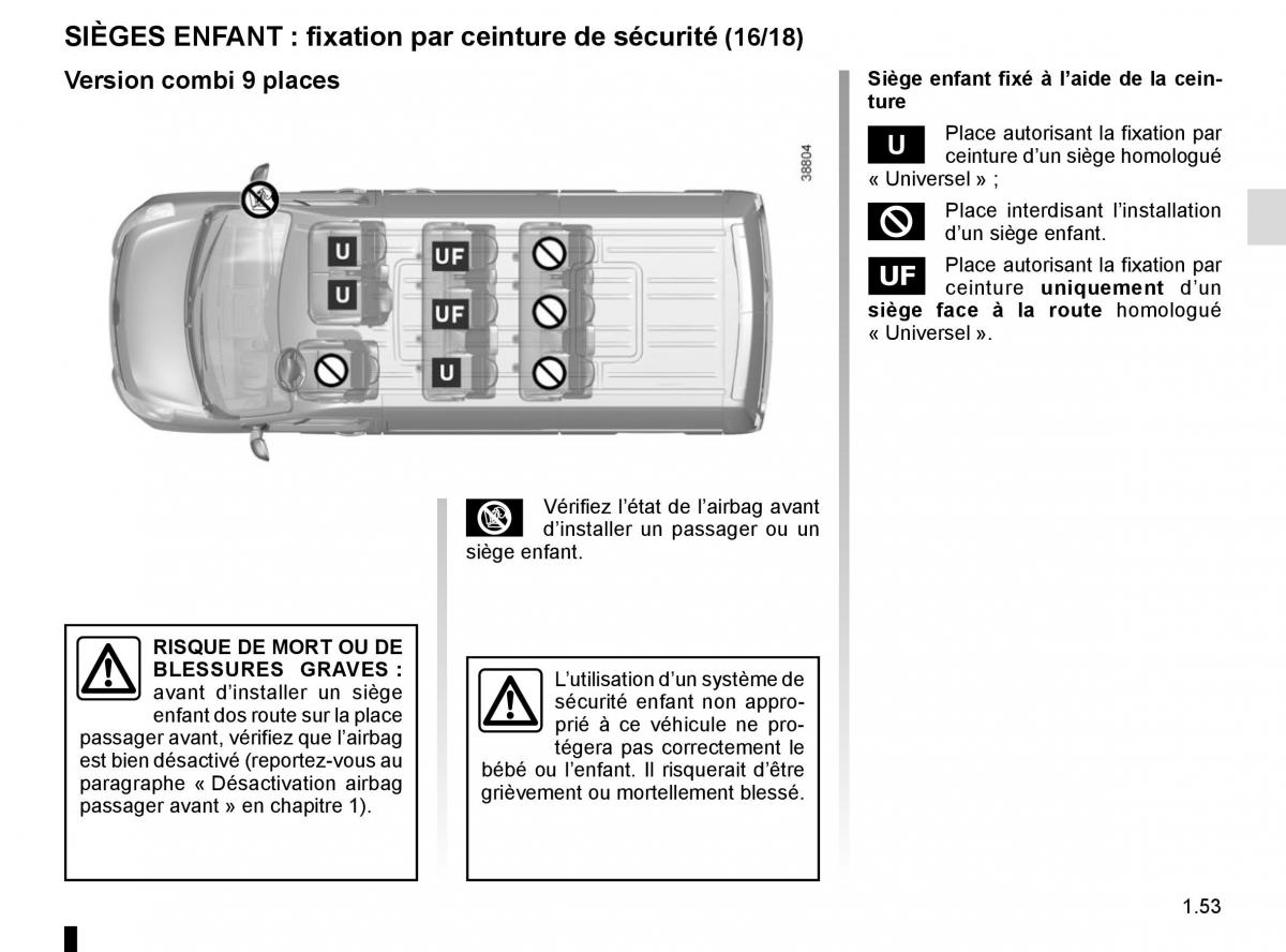 Version combi 9 places Siège enfant fixé à l’aide de la cein-