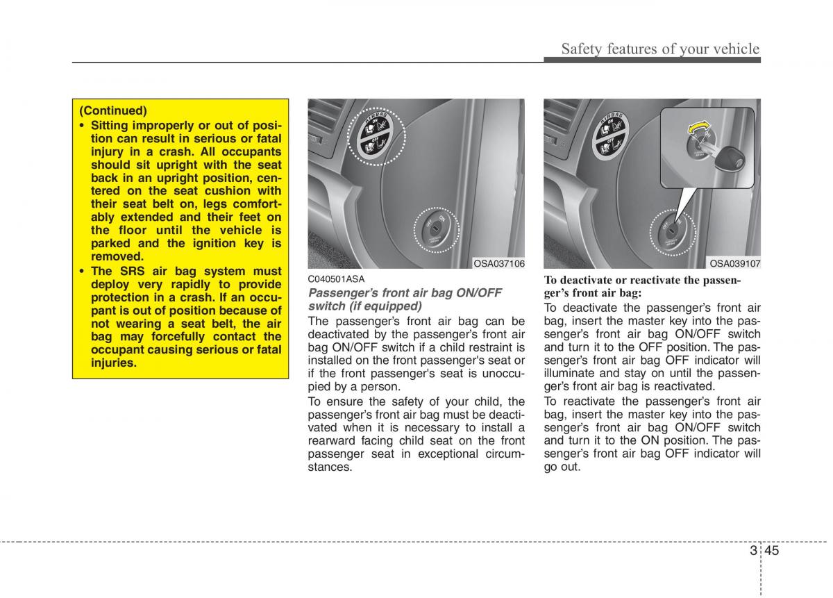 Passenger’s front air bag ON/OFF ger’s front air bag:
