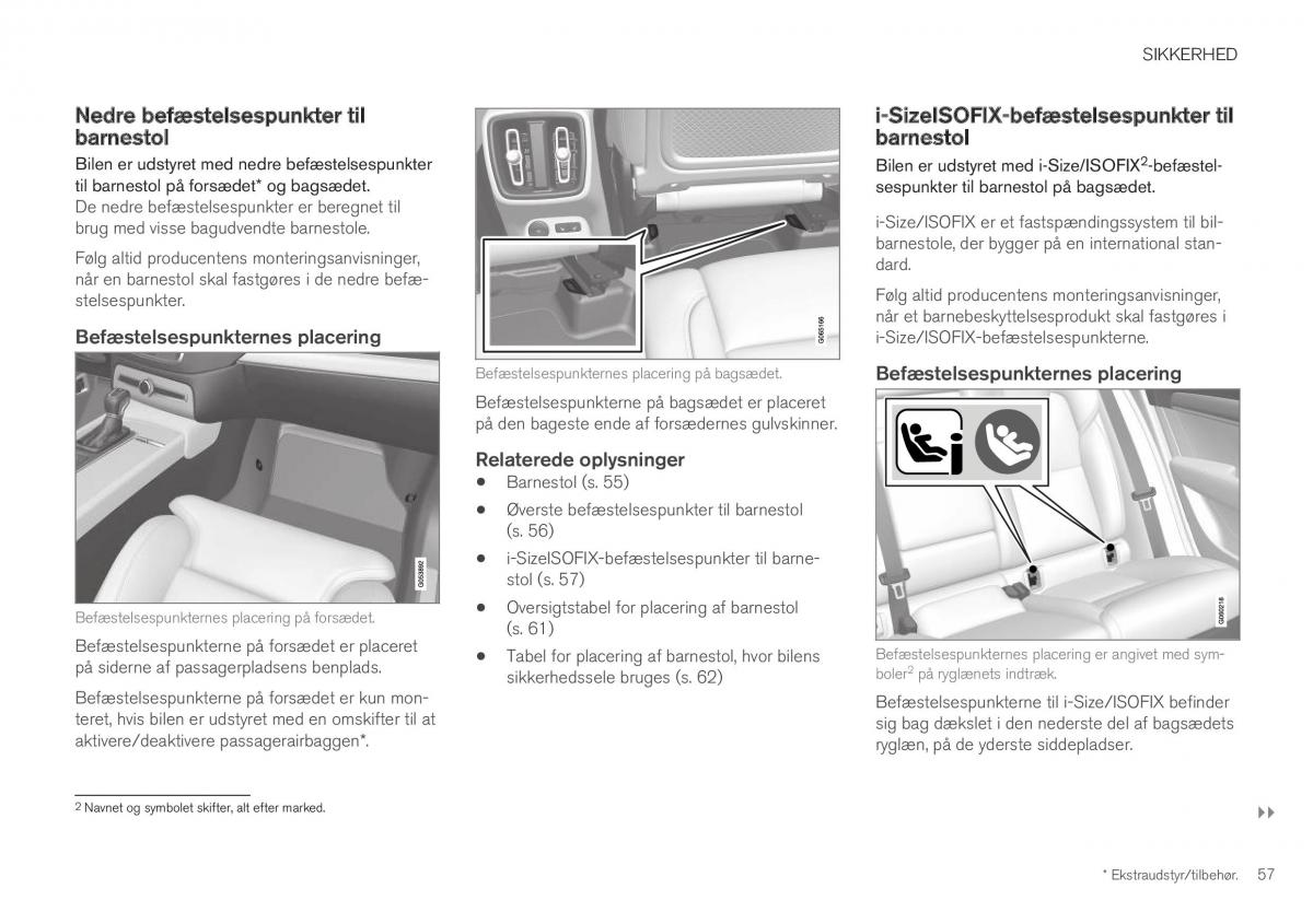 til barnestol på forsædet* og bagsædet. sespunkter til barnestol på bagsædet.