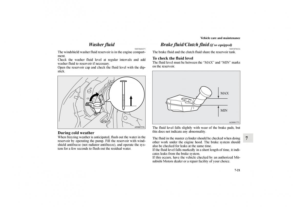 washer fluid to reservoir if necessary. The fluid level must be between the “MAX” and “MIN” marks