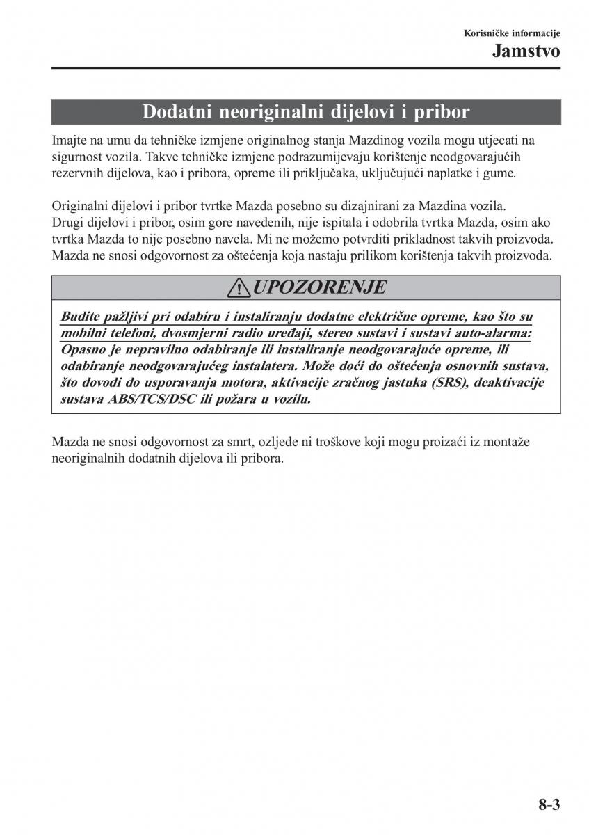 Imajte na umu da tehničke izmjene originalnog stanja Mazdinog vozila mogu utjecati na