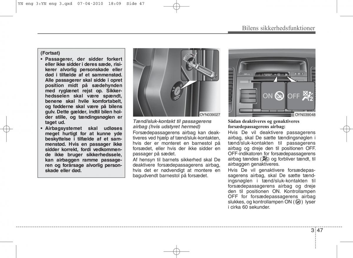 sidder korrekt, fordi vedkommen-forsædet, eller hvis der ikke sidder enairbag og dreje den til positionen OFF.