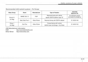 IL = Suitable for particular ISOFIX child restraints systems (CRS)