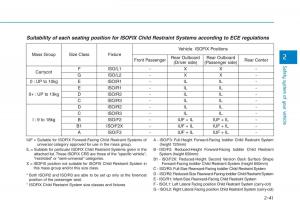 Suitability of each seating position for ISOFIX Child Restraint Systems according to ECE regulations