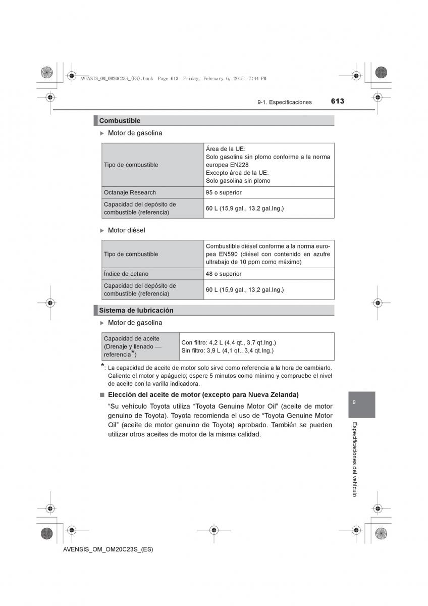 AVENSIS_OM_OM20C23S_(ES).book Page 613 Friday, February 6, 2015 7:44 PM